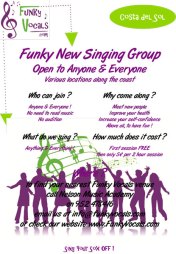 Moving to Spain, I haven’t had the opportunity to sing, well only in the shower πΒ So I was delighted to hear a dear friend of mine, Cheryl had taken the initiative with a Music academy on the coast The International Nelson Music Academy, to form ‘Funky Vocals’ a funky singing group open to anyone & everyone.